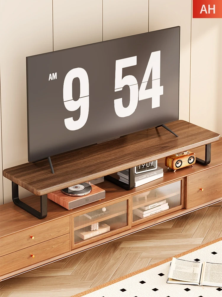 高品質な天然木製モニター収納スタンド - リビングルームに最適な液晶テレビ用台座!画面を高くし、快適な視聴体験を提供します。おしゃれで実用的な収納スペースを実現!