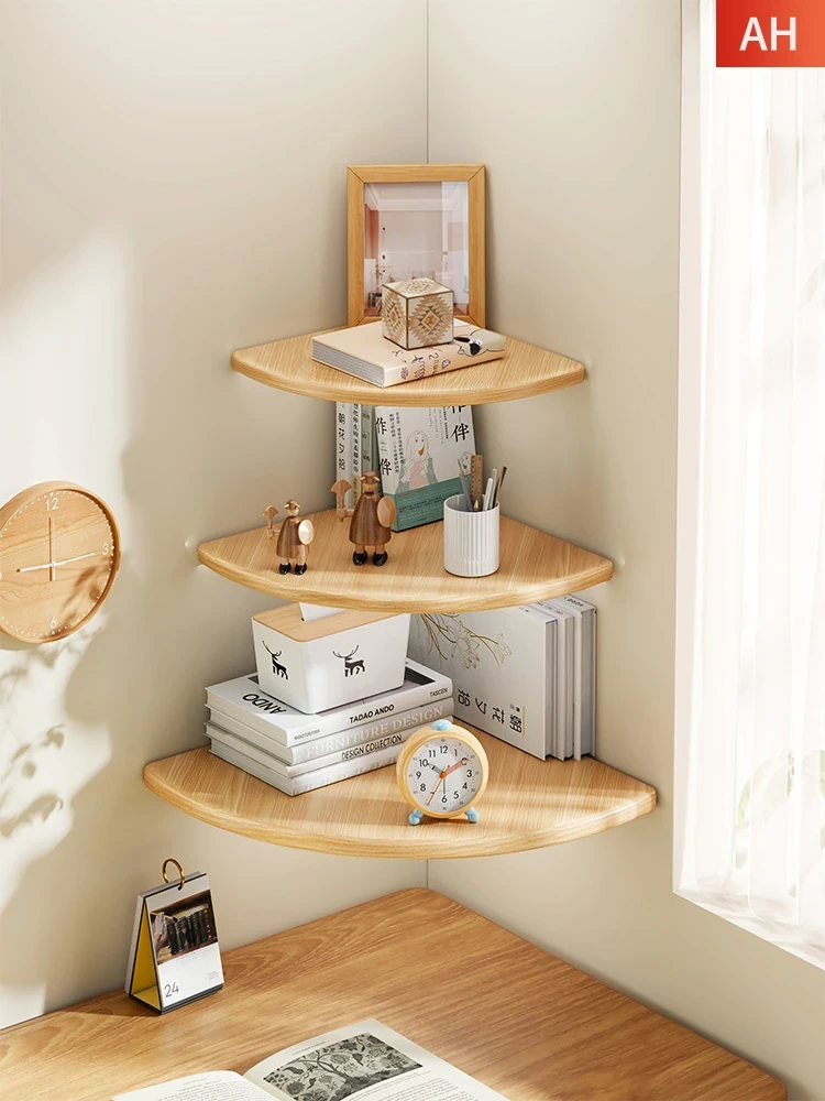 実木製コーナーキャビネット - 寝室やリビングに最適な収納力抜群の三角型キッチンコーナーラック!限られたスペースを有効活用し、スタイリッシュに整理整頓。おしゃれで機能的なインテリアを演出します!