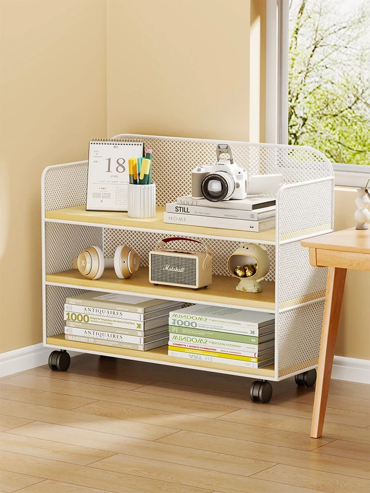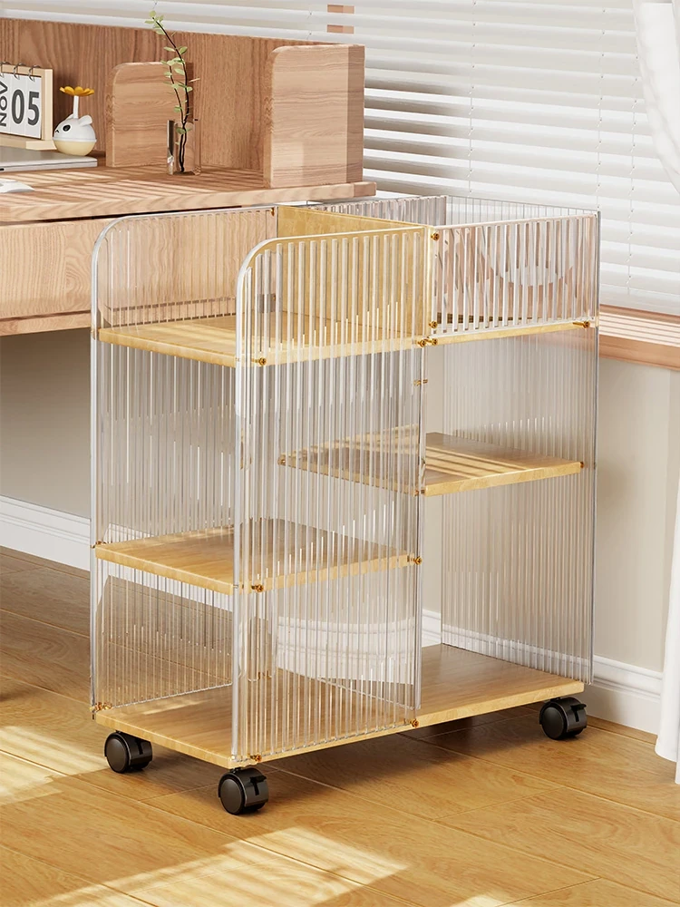 Stylish Acrylic Bookshelf for Kids - Space-Saving Side Storage Rack with Wheels, Perfect for Organizing Children's Desks and Books in a Chic Way!