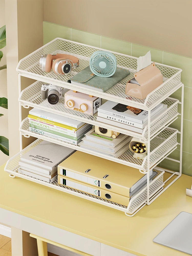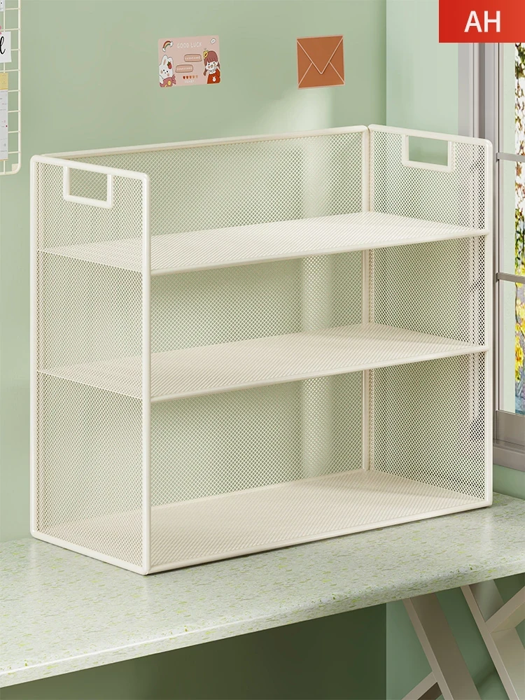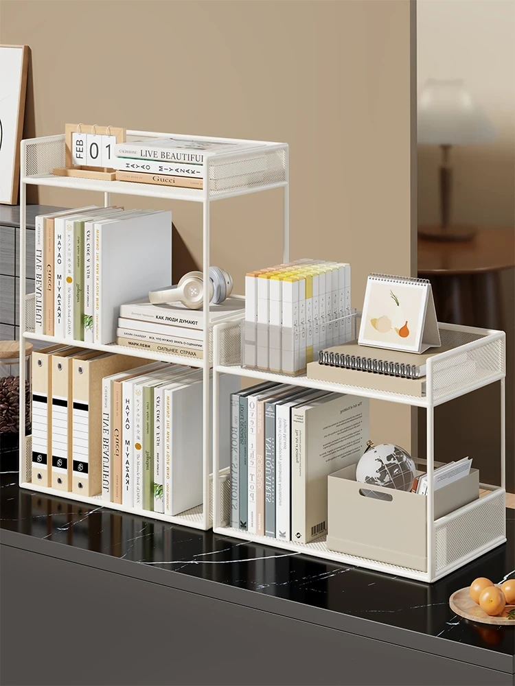 Multilayer Iron Bookshelf Organizer - Stylish Office and Home Desk Storage Solution for Books, Perfect for Dorms and Workstations!