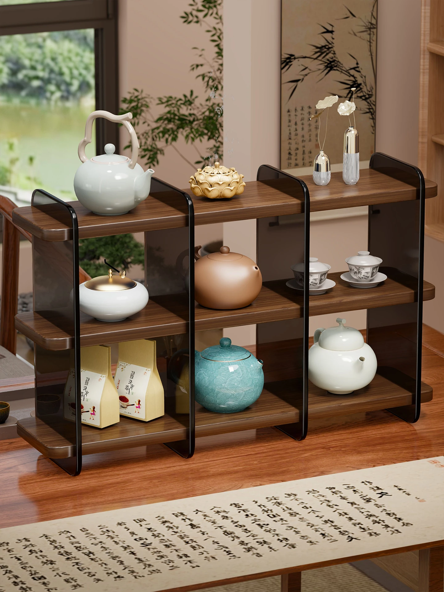 Modern Minimalist Chinese-style Desk Storage Rack - Compact Cup Holder and Tea Display Stand for Tea Room, Ideal for Organizing Teaware and Decorative Items.