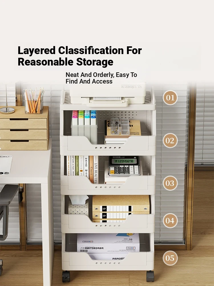 Multi-Tier Rolling Cart for Kids - Versatile Bookshelf, Snack Organizer, and Backpack Holder for Office or Home Use - Space-Saving and Portable Storage Solution