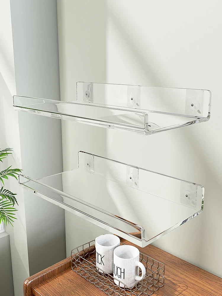 Transparent Acrylic Wall-Mounted Storage Shelf - No Drilling Required, Perfect for Living Room and Bathroom, Ideal for Organizing with Stylish Partition Boards