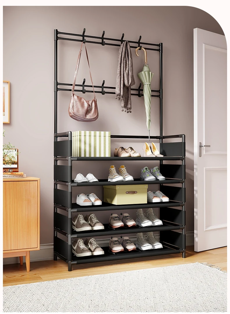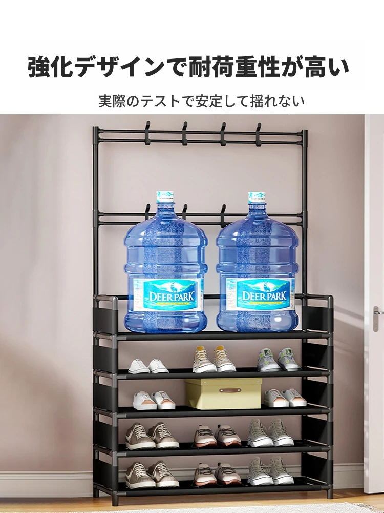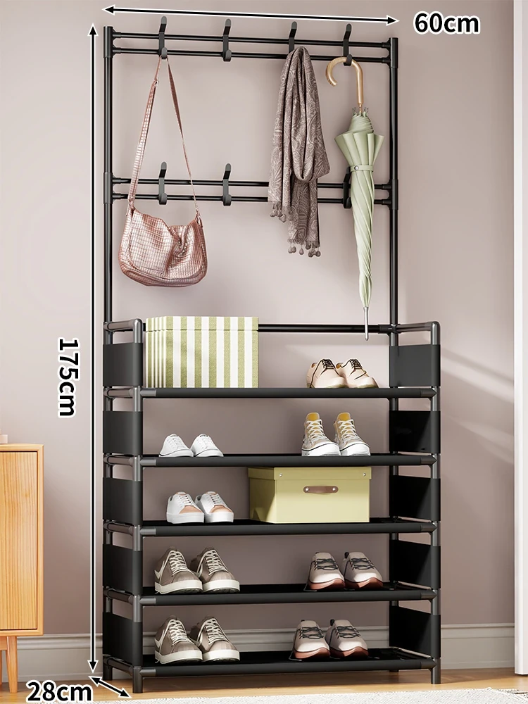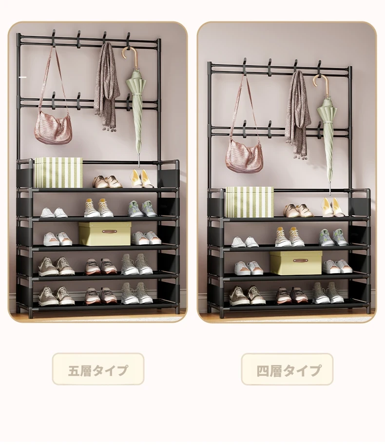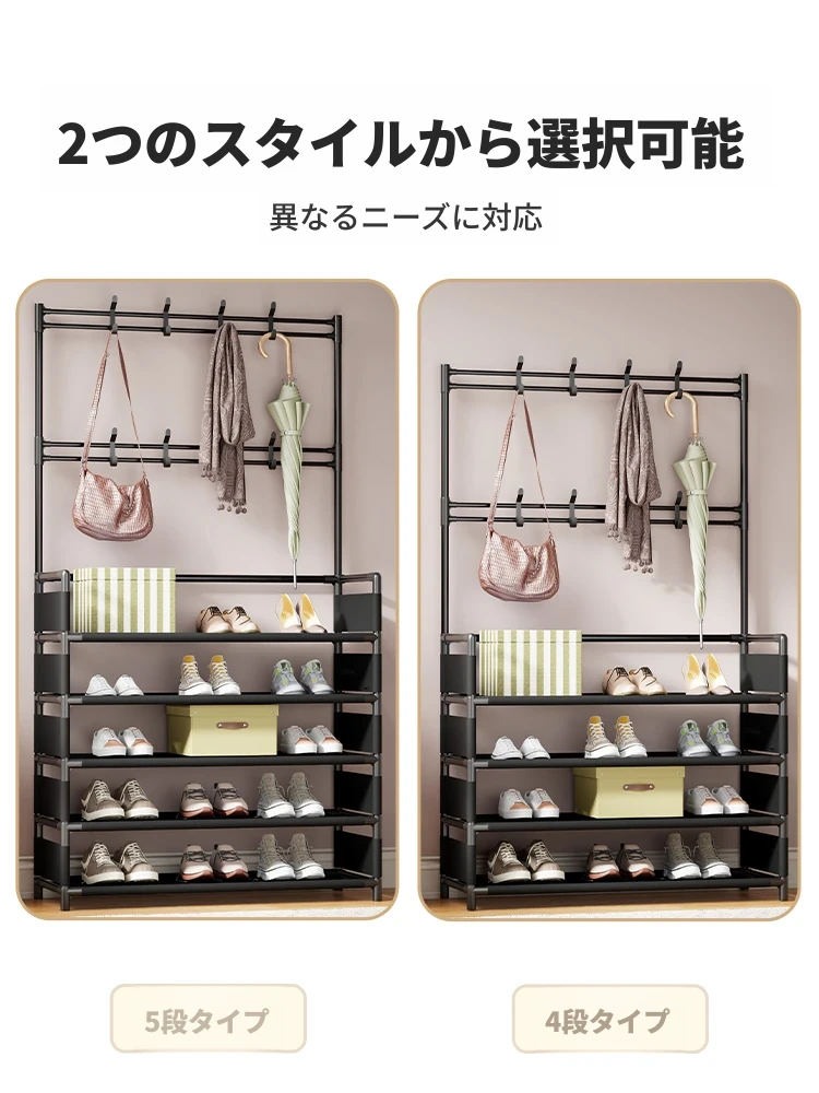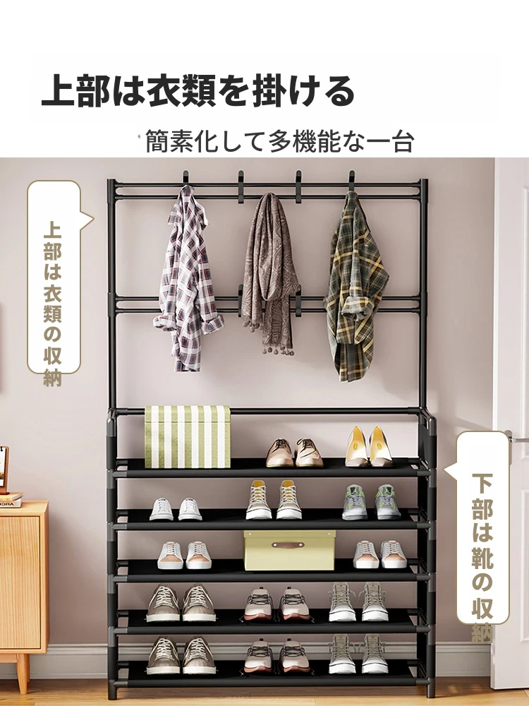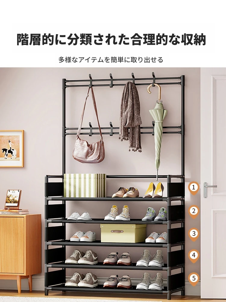 玄関用多機能シューズラック - おしゃれな掛け式ハンガーと防塵収納の一体型靴箱!省スペースで靴と衣類をすっきり整理!あなたの玄関を美しく保つ必需品!