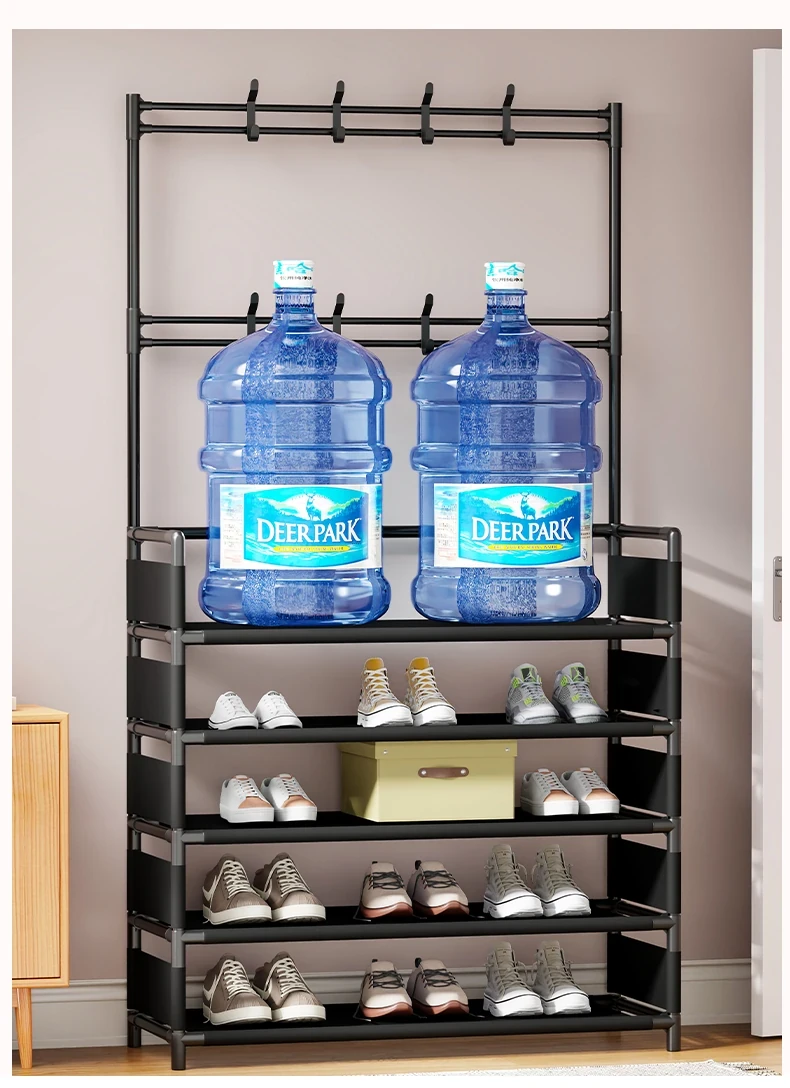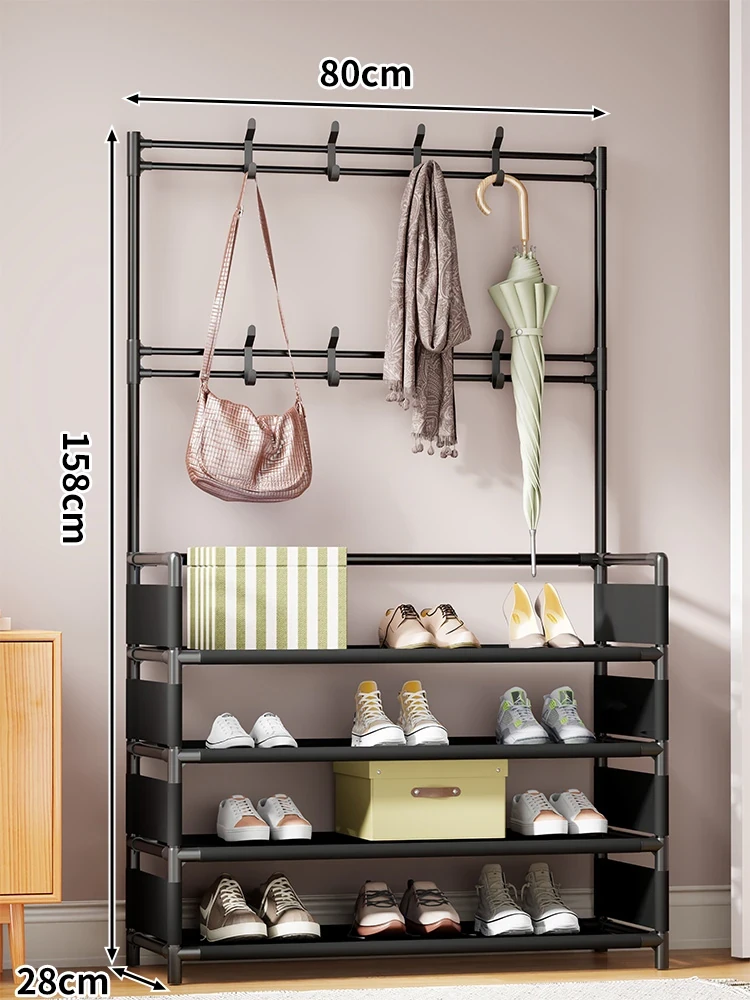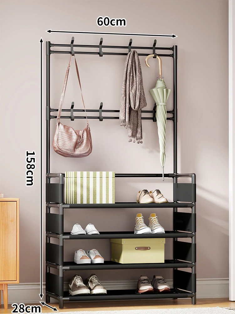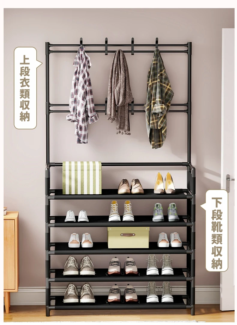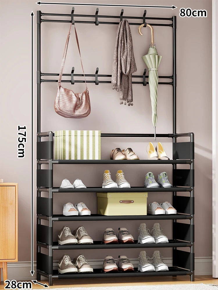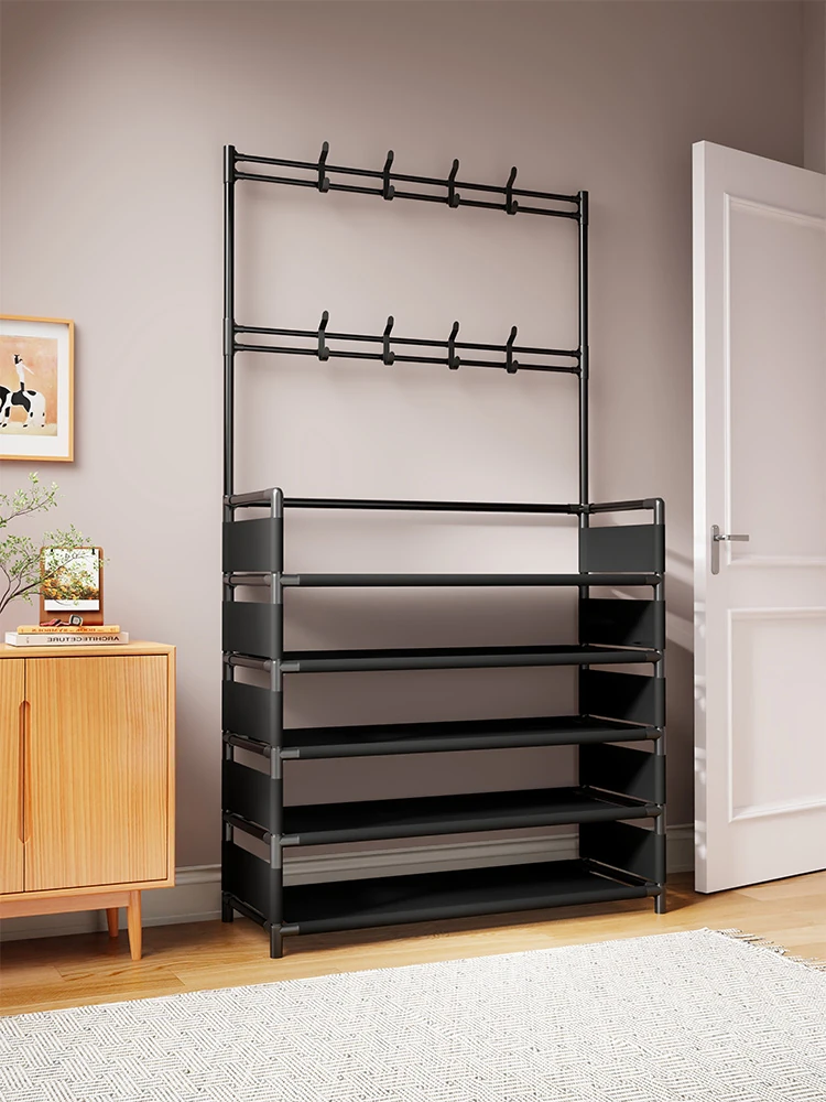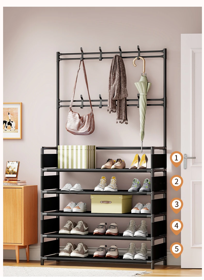 玄関用多機能シューズラック - おしゃれな掛け式ハンガーと防塵収納の一体型靴箱!省スペースで靴と衣類をすっきり整理!あなたの玄関を美しく保つ必需品!