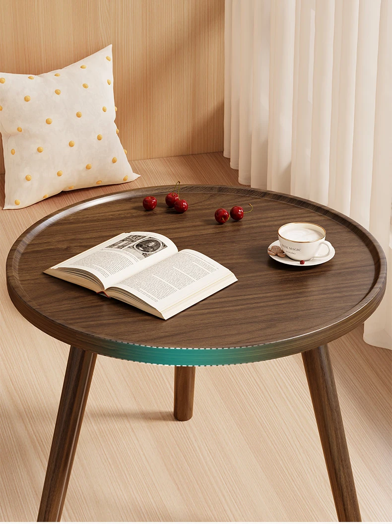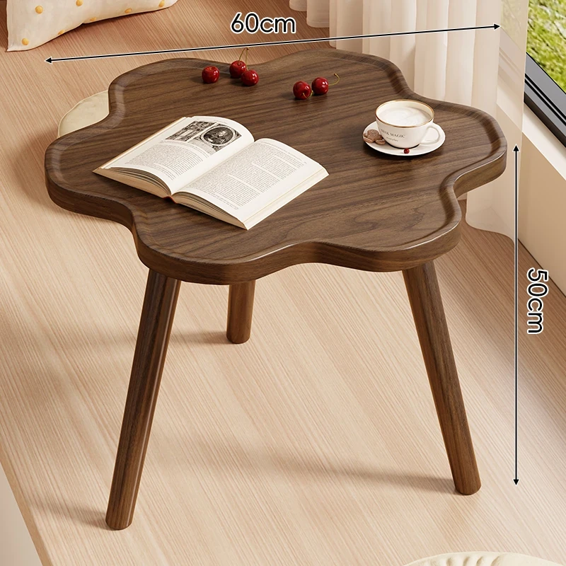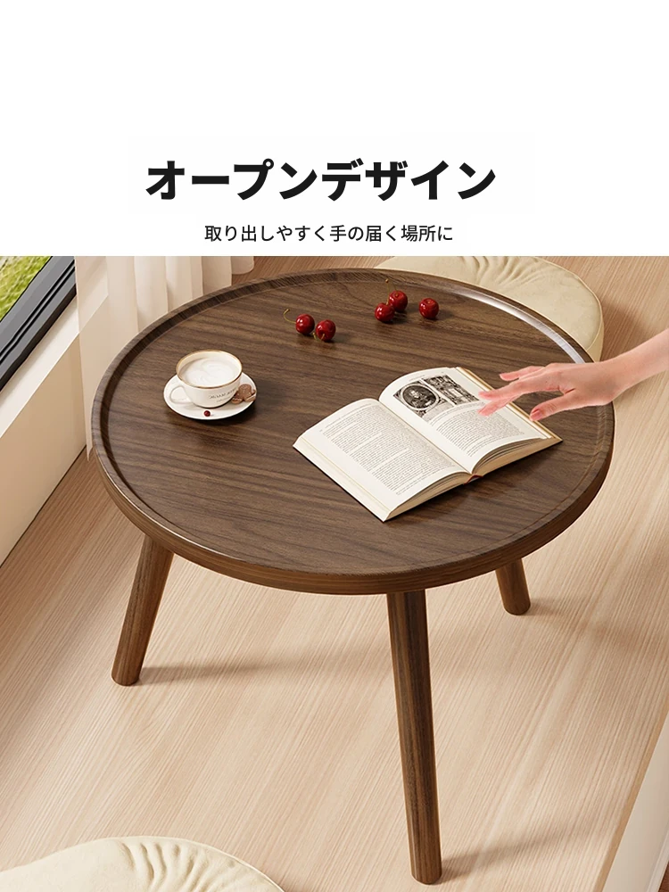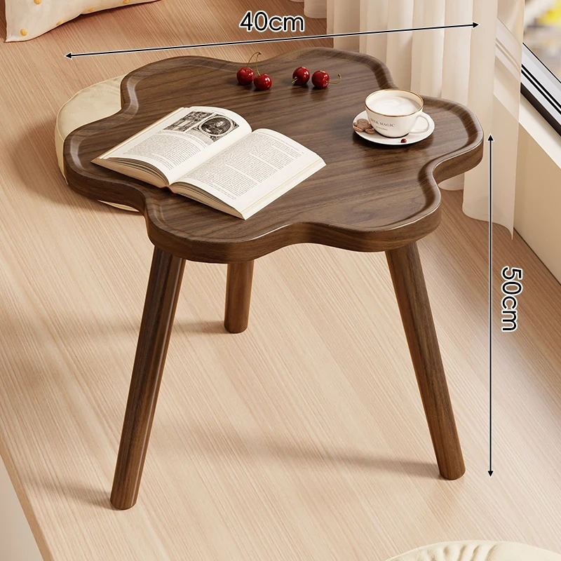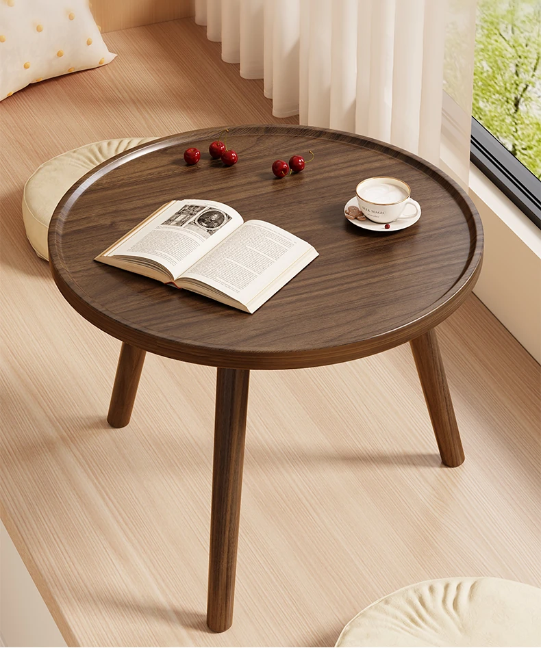 無垢材のクルミ製窓辺の小さなテーブル - おしゃれな茶卓!畳の上やベッドサイドにぴったりのミニサイドテーブル。寝室やリビングに自然の温もりをプラス!収納もできる便利なデザイン。