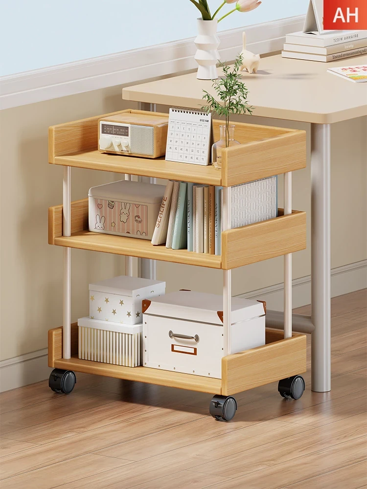実木製の書棚 家庭用書斎に最適!移動可能な小型カート、リビングにもぴったりな収納スペース。お菓子や雑貨をスッキリ整理できる多層タイプ!スタイリッシュで機能的な収納をお楽しみください。