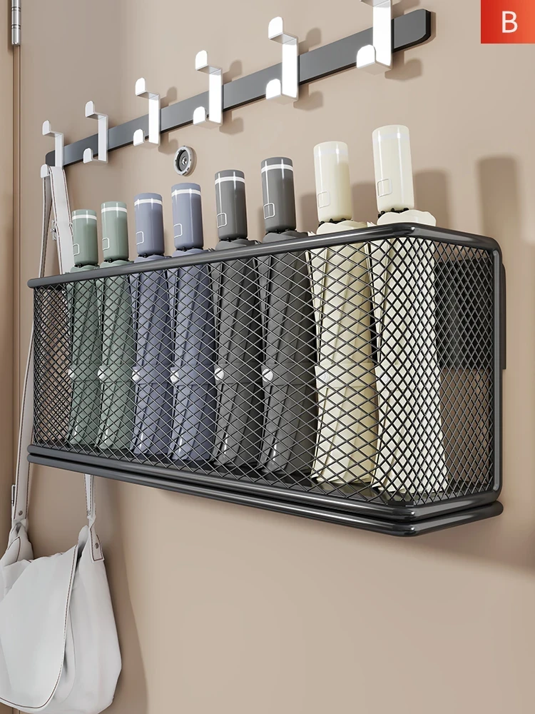 穴あけ不要!壁掛け式マグネット傘収納ラック - おしゃれなアイアン製で玄関をスッキリ整理!雨具をスマートに収納して、毎日の出かけを快適に。