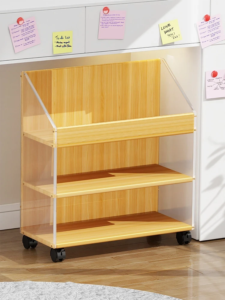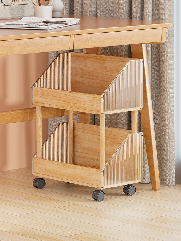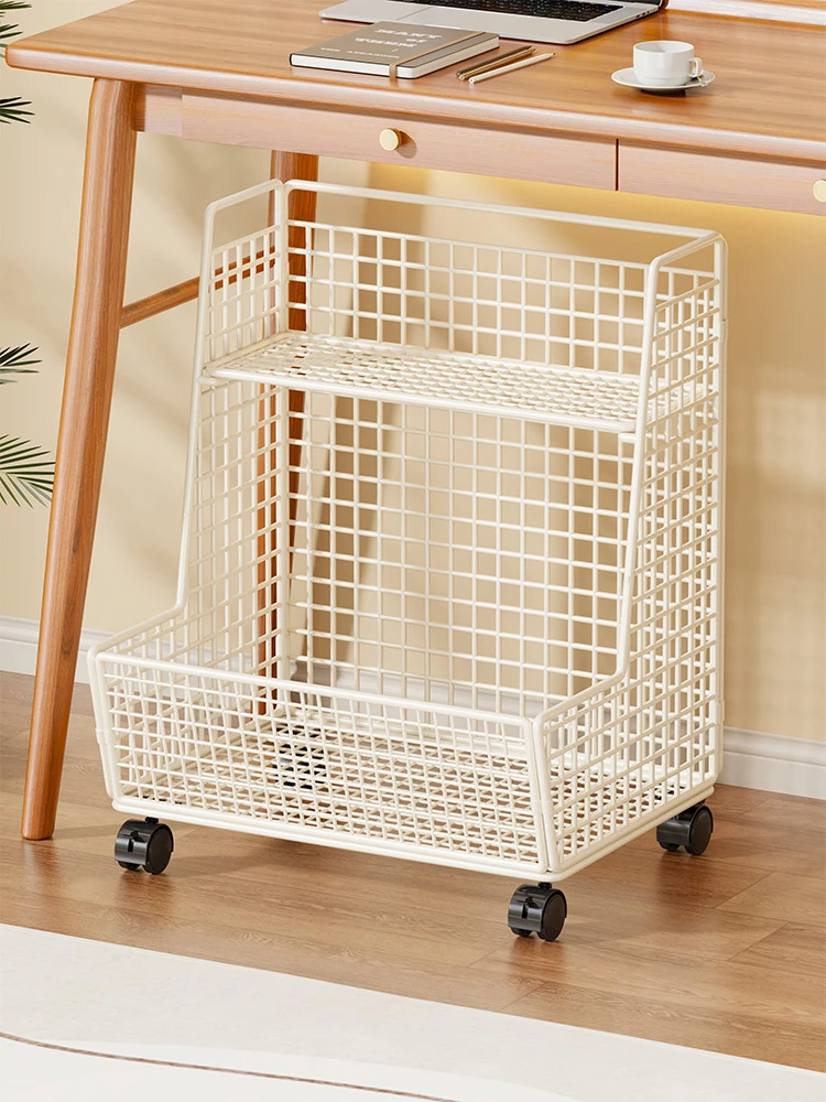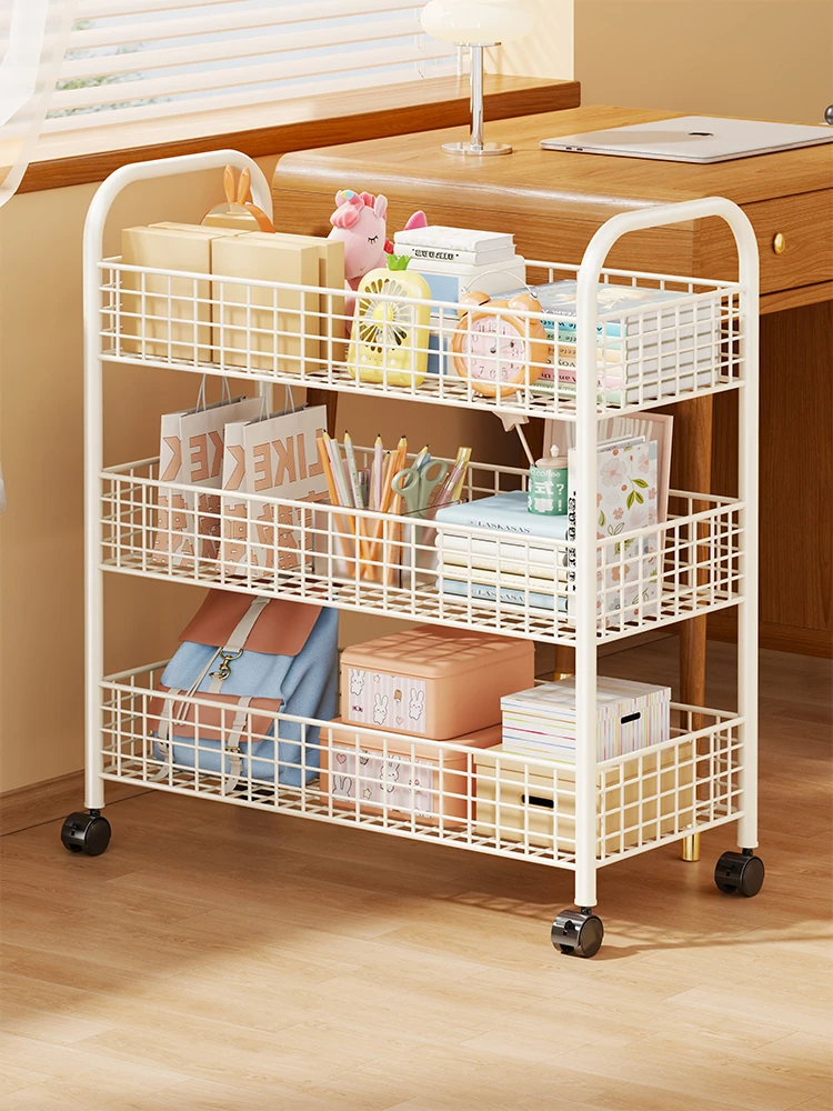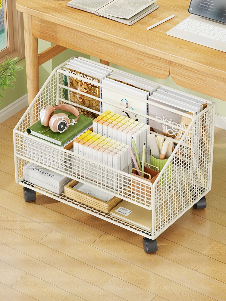 子供向け移動式キャスター付きデスク下書棚 - 寝室での収納に最適なスナックラック!本やリュックをスッキリ整理できる便利アイテム!