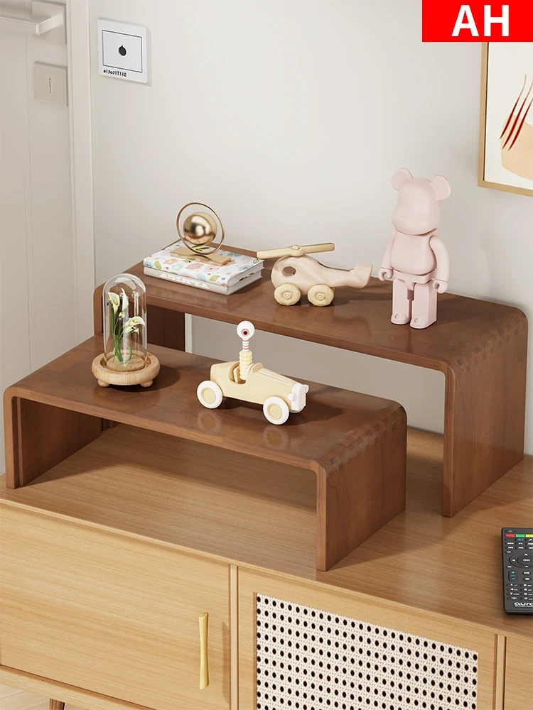 天然木製U型ディスプレイラック - ポップマートフィギュアやコレクションを美しく飾るためのスタイリッシュなステップ収納棚!デスク周りをスッキリ整理して、あなたの大切なアイテムを際立たせましょう!