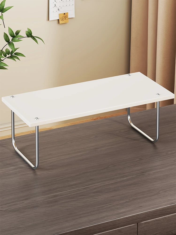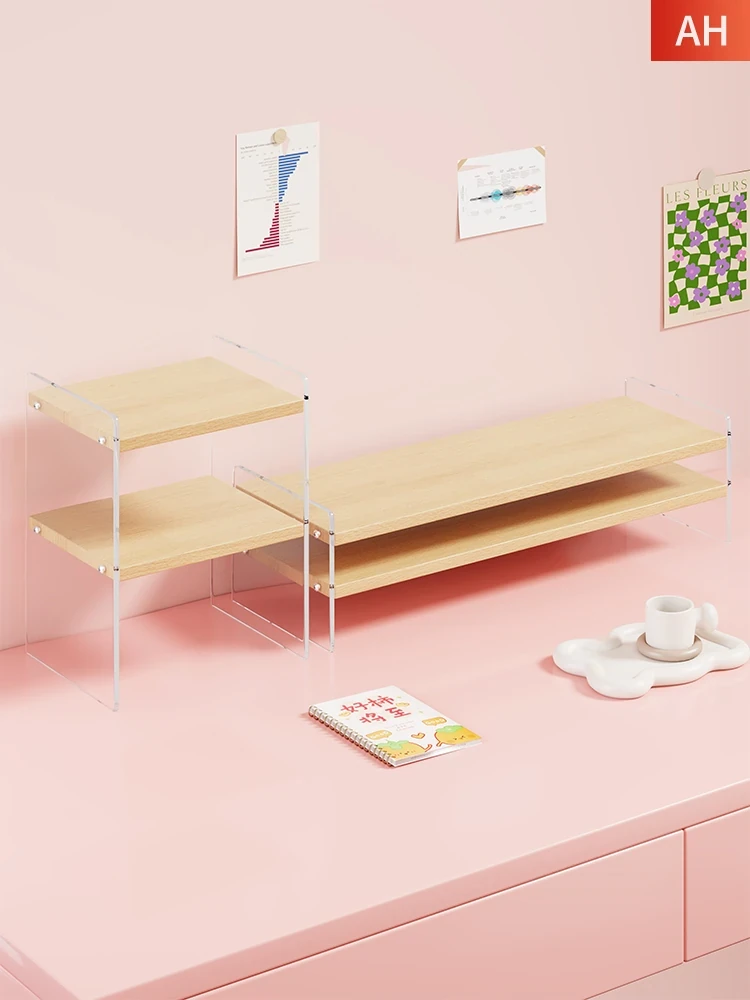 デスク用モニターアクリルスタンド - スペースを有効活用!多層設計で書籍や文具も整理整頓。おしゃれなデザインでオフィスをグレードアップ!高さ調整可能で、快適な作業環境を実現。