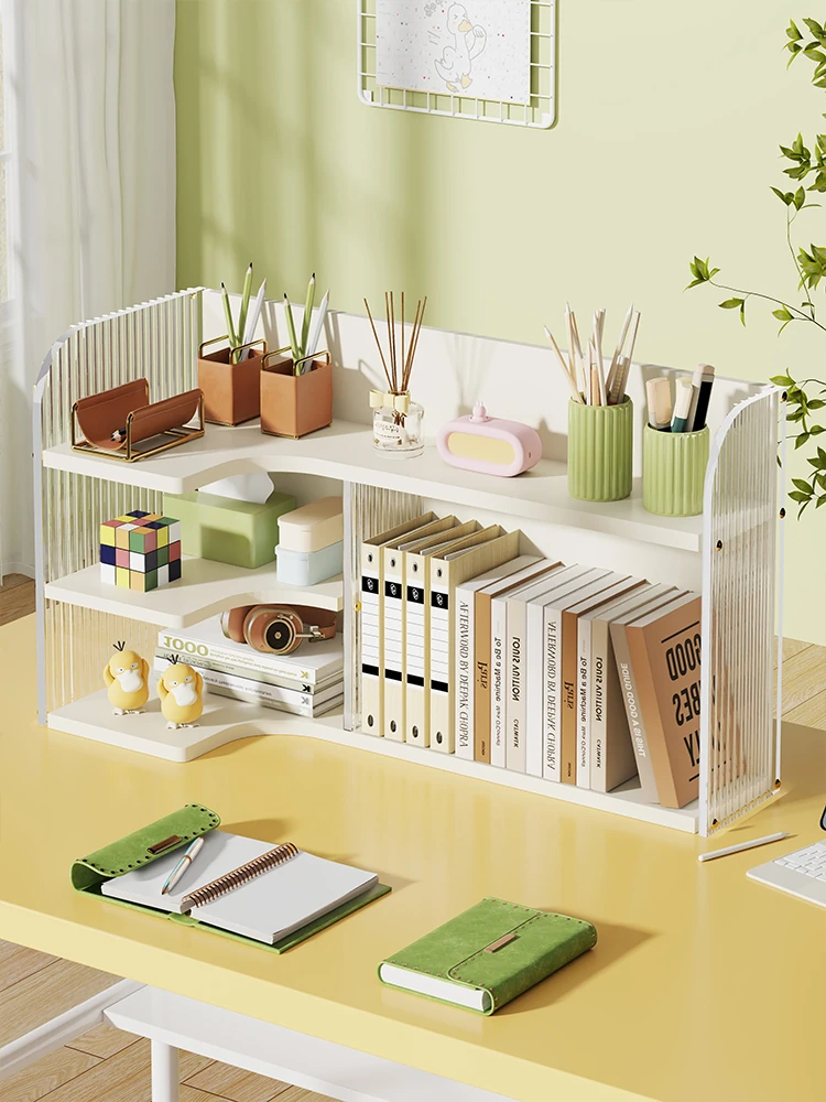 デスク上の多段書籍ラック - 子供の絵本整理に最適!学生の教科書もスッキリ収納できる、スタイリッシュで機能的なオフィスデスク用ファイルスタンド。整理整頓で学びの環境を向上させましょう!
