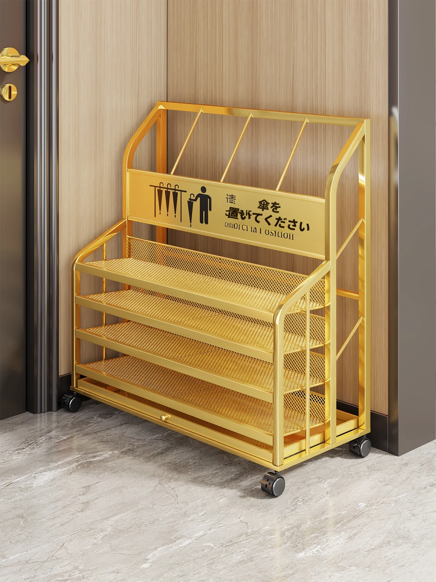 家庭用・玄関に最適な傘収納ラック!水切り機能付きで、ホテルのロビーにもぴったりな大容量傘立て。スタイリッシュなデザインで、すっきりとした空間を演出します。